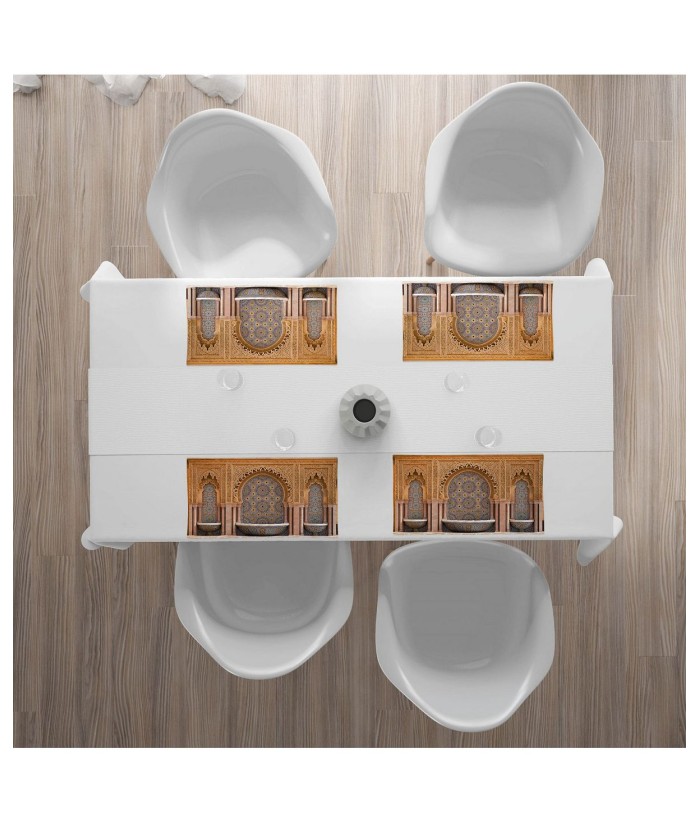 Transport your dining table to the exotic world of Morocco with the Moroccan Place Mats - Set of 4. These placemats showcase intricate Moroccan patterns, vibrant colors, and the allure of North African culture. Whether you're a fan of Moroccan cuisine, a traveler, or simply appreciate the beauty of Moroccan design, these place mats add a touch of desert elegance to your dining experience.